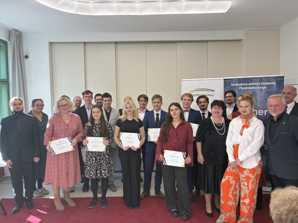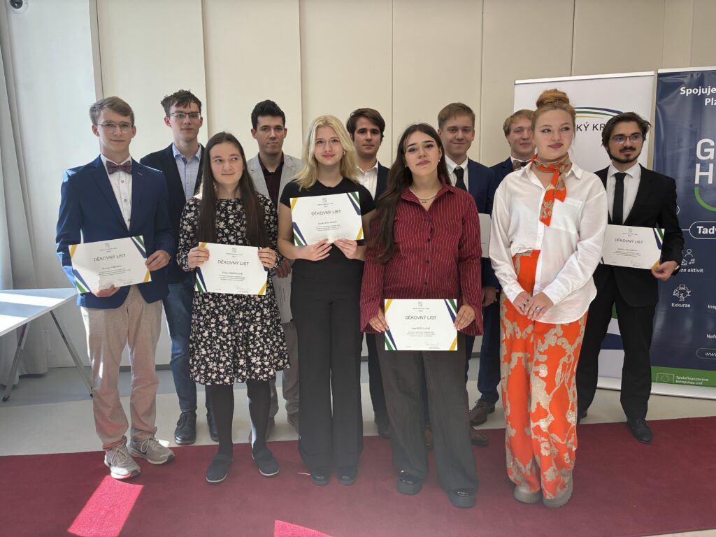 Plzeňský kraj ocenil 14. října 2025 dvanáct nejúspěšnějších žáků základních a středních škol, kteří v uplynulém školním roce zazářili v celostátních a mezinárodních kolech soutěží — a mezi nimi byl i náš student Daniel Pojhan!