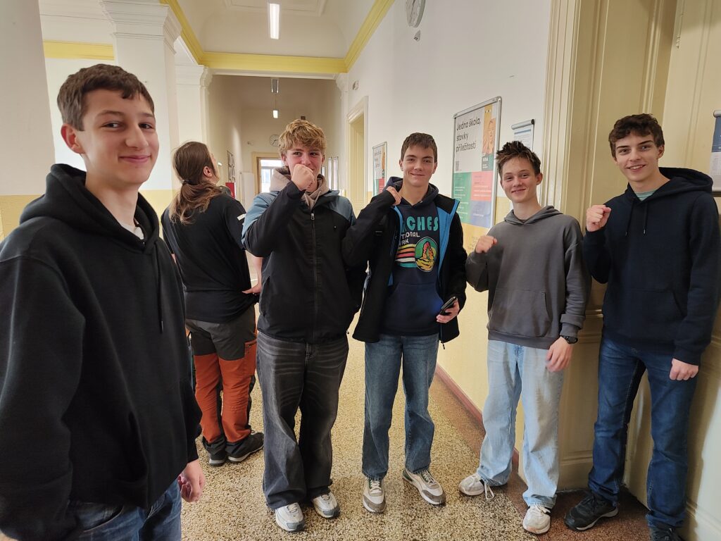 Letos se mezinárodní týmové soutěže Fyzikální Náboj účastnily za naši školu tří týmy. Nejstarší seniorský ve složení Jan Dubišár (7.E), Daniel Nejezchleba (3.A), Jakub Toupal (4.B), Mikuláš Ungr (7.E) a Lukáš Vítek (7.E) se v Praze umístil na nádherném osmém místě, celorepublikově dvanáctí a mezinárodně třicátí sedmí.
