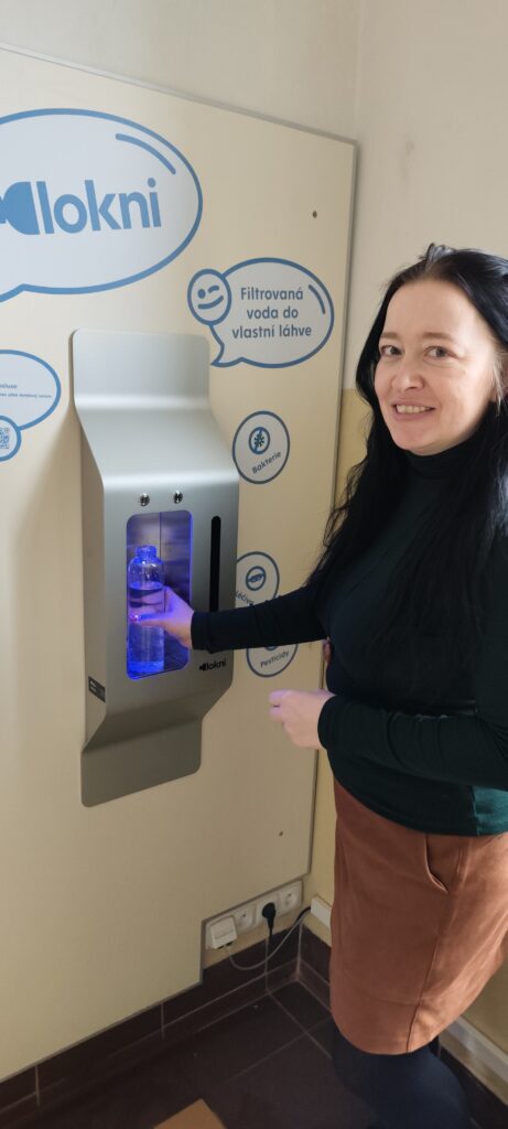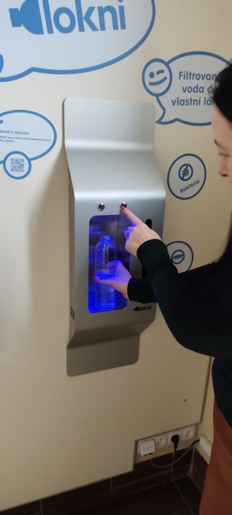 Systém Lokni funguje jako filtrační stanice, která upravuje běžnou kohoutkovou vodu. Voda prochází vícestupňovou filtrací, která z ní odstraňuje chlor, pachy, mikroplasty a další nečistoty, přičemž zachovává důležité minerály (více o technologii a systému naleznete na lokni.cz a také zde) . Systém používá řada škol a institucí v celé republice.