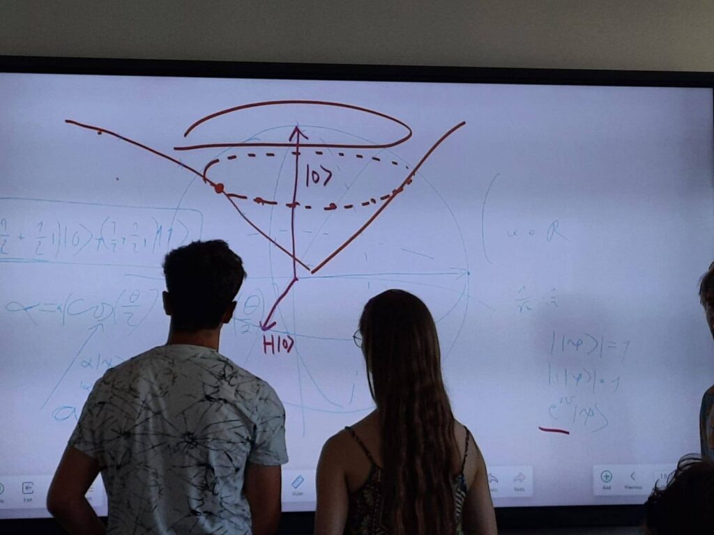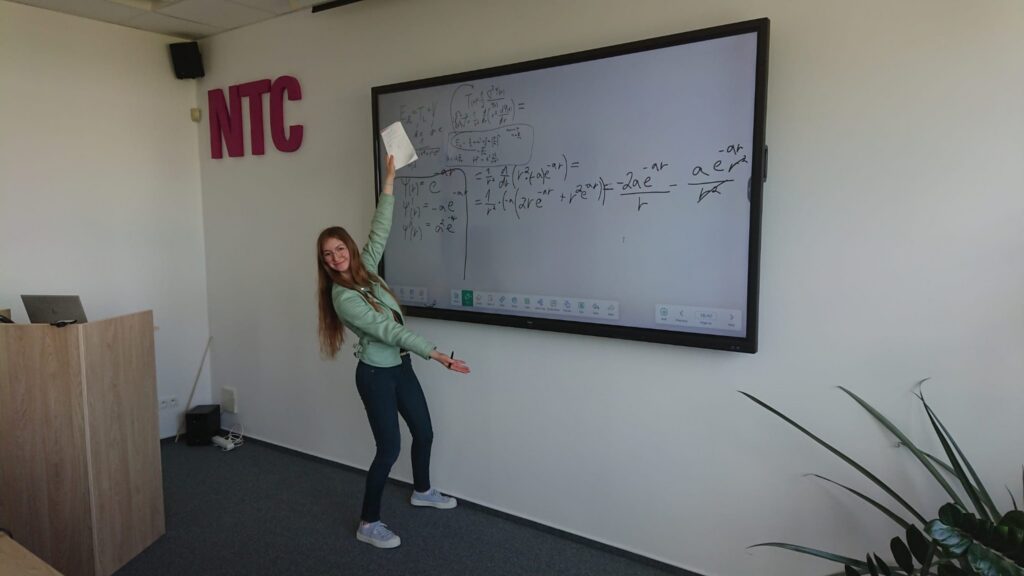 Letos v srpnu absolvovala Ema Žánová (5.C) dvoutýdenní stáž ve výzkumném centru NTC (výzkumný ústav nových technologií při ZČU). Stala se součástí tzv. Kvantové pětky, jejímž úkolem bylo vytvořit několik ukázkových programů, na nichž by se daly vysvětlovat principy kvantového programování.