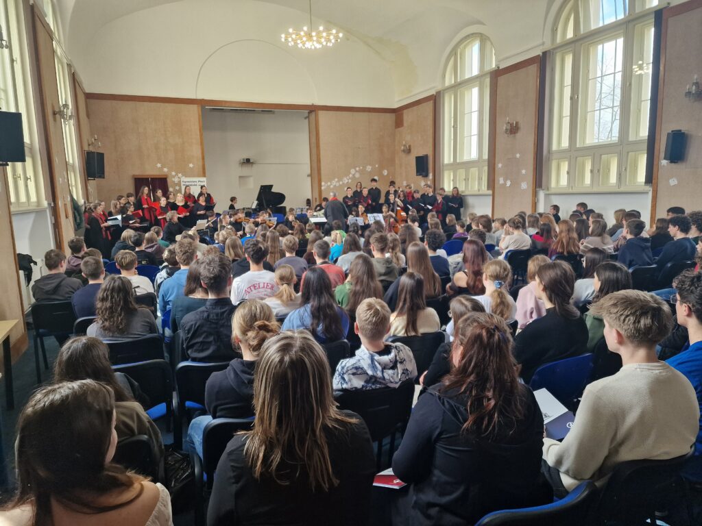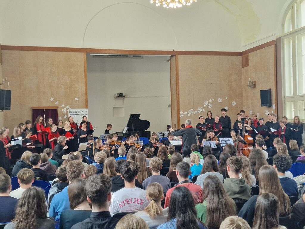 V pondělí 16. 3. zavítali na naše gymnázium žáci a učitelé z pražského Gymnázia Jana Keplera. Ti nám v rámci generální zkoušky před svým vystoupením na festivalu Smetanovské dny předvedli kantátu Balada horská s textem Jana Nerudy a suitu z muzikálu Balada pro banditu. Celý program s nimi nastudovali pedagogové Roman Michálek a Martin Bouma. Vystoupení se nám velmi líbilo a už teď se těšíme na další spolupráci mezi Prahou a Plzní!