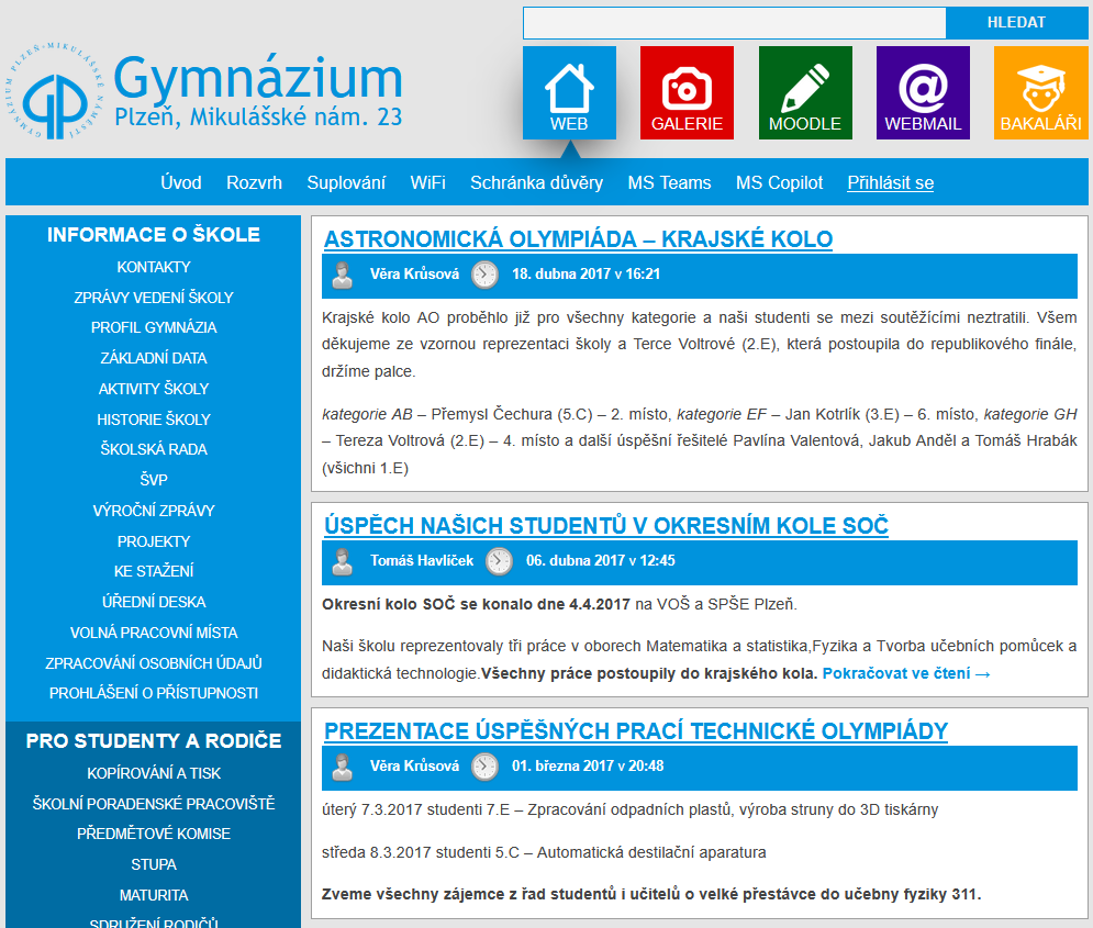 Poslední verze stránek vznikla v roce 2016 v systému WordPress, autorem grafického návrhu byl student Jakub Štěpánek (tehdy 3.C), jejich autorem byl správce sítě Josef Červenec.