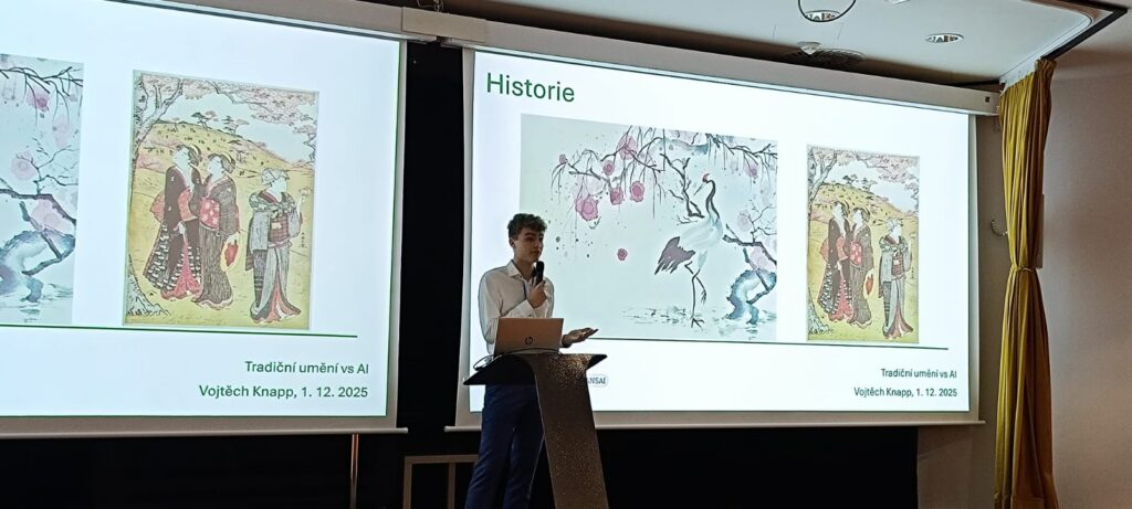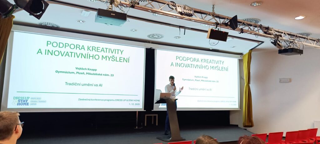 Petra Nováčková a Vojtěch Knapp prezentovali naši školu na závěrečné konferenci projektu DRESS UP & STAY HOME. Oba studenti se zúčastnili výjezdu plzeňských středoškoláků na Expo do Ósaky. Na slavnostním zakončení projektu v Techmánii 1. prosince měl Vojta Knapp přenášku Tradiční umění vs AI, Petra Nováčková vedla workshop jak se chovat v zahraničí v krizových situacích. Společně s ostatními účastníky akce převzali certifikáty od vedení Plzeňského kraje, který projekt financoval. O celé akci najdete více informací zde.