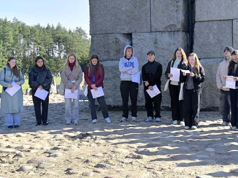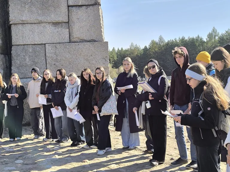 Poslední zářijový týden strávila 4. B a část 8. E velkou cestou po jihovýchodním Polsku. Tradiční exkurze měla letos jinou podobu – účastníci více než půl roku v rámci češtiny a ZSV bádali v archivech a hledali osudy Plzeňanů zavražděných ve vyhlazovacím táboře Treblinka. Odvedli fantastickou práci, dali dohromady životní příběhy více než sto padesáti jednotlivců a rodin a pak jejich jména a některé osudy přečetli přímo v prostoru tábora. Za umožnění tohoto mimořádného a velmi silného zážitku děkujeme varšavské nadaci Paměť Treblinky.