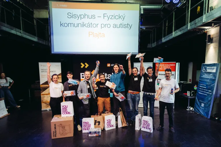 Srdce i hlasy poroty si nejvíce získal tým Plajta s komunikátorem Sisyphus. Vznikl přímo podle zadání sester, které pracují s dětmi s poruchou autistického spektra a potřebují snadno ovladatelné, a hlavně levné zařízení. Výherci hackathonu splnili vše do puntíku a jejich aplikace pro tisk kartiček funguje dokonce i s konkurenčními produkty.