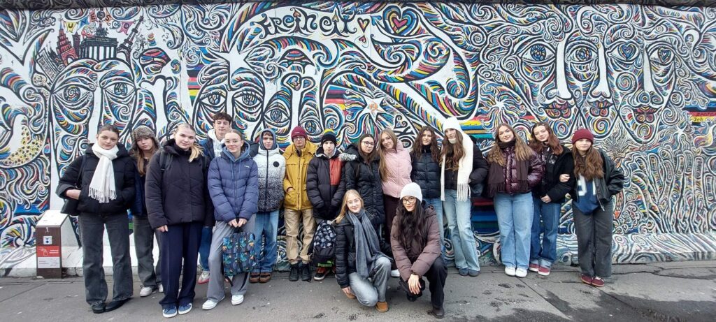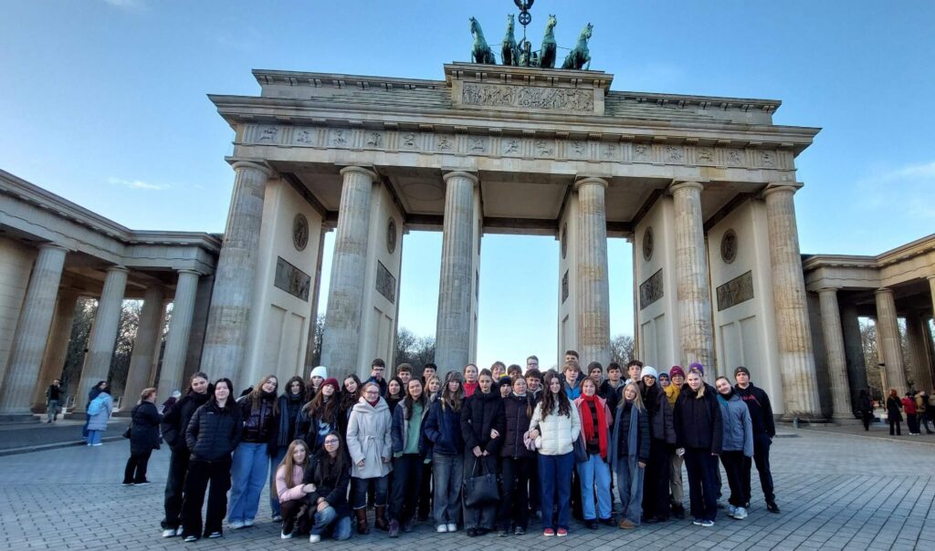 Čtvrtek 11. 12. a pátek 12. 12. strávilo 43 žáků z 1.A, 1.B, 3.C, 5.E a 5.F v hlavním městě Německa. První den začal u symbolických ruin kostela Gedächtniskirche, poté v Asisi Panorama: Die Mauer, která představuje na obřím plátně Berlín a čtvrť Kreuzberg z 80. let. Dozvěděli jsme se o životě na obou stranách zdi. Dalšími zastávkami byly přechod Checkpoint Charlie, náměstí Alexanderplatz a vyhlídková terasa z hotelu Park Inn na ikonickou Fernsehturm.