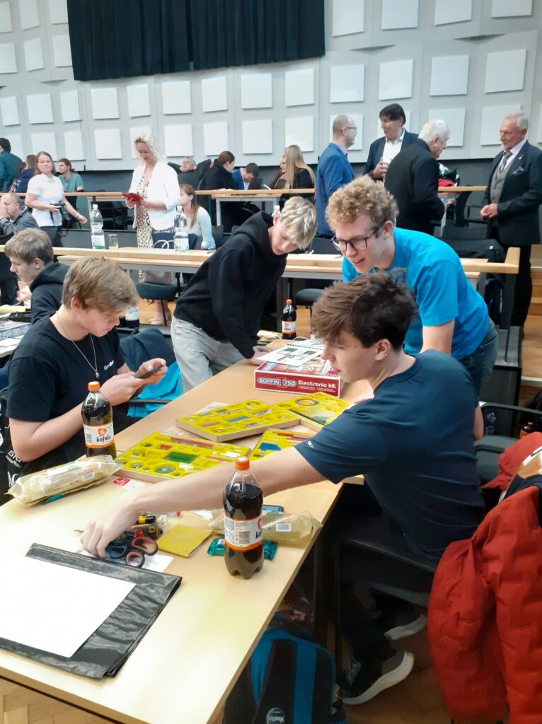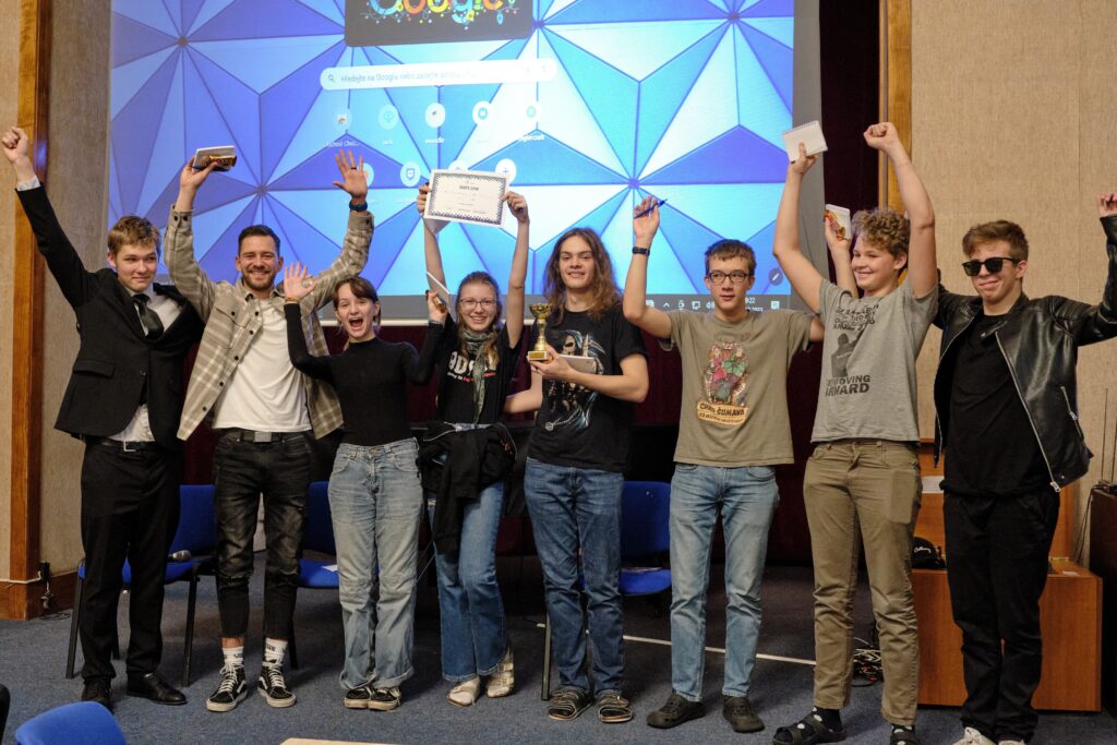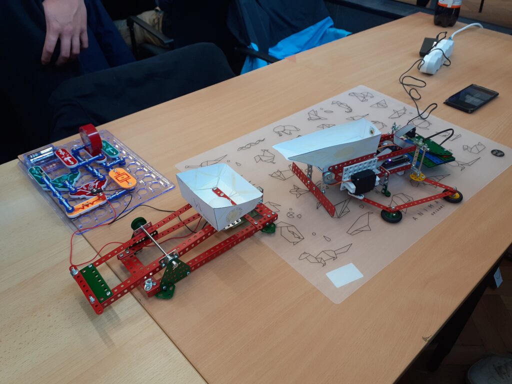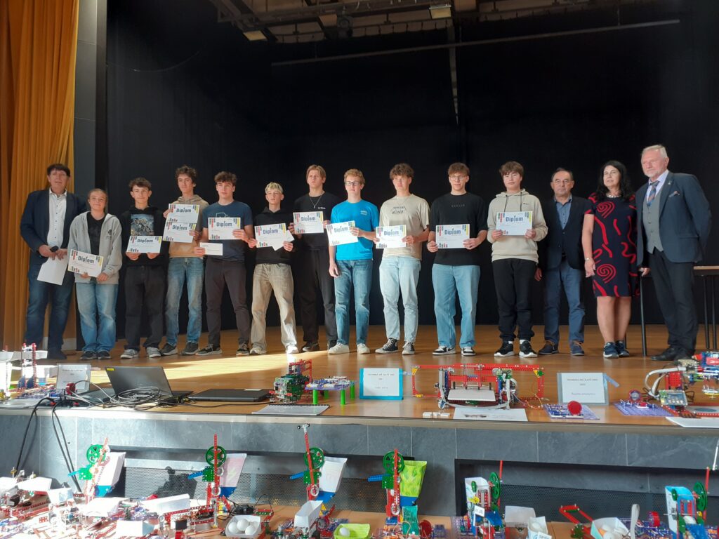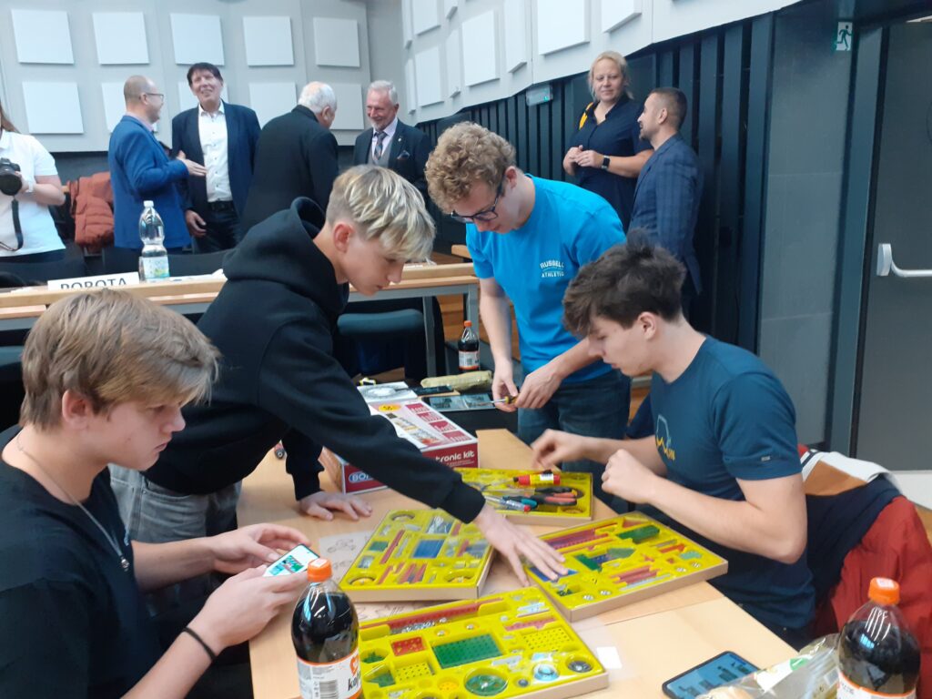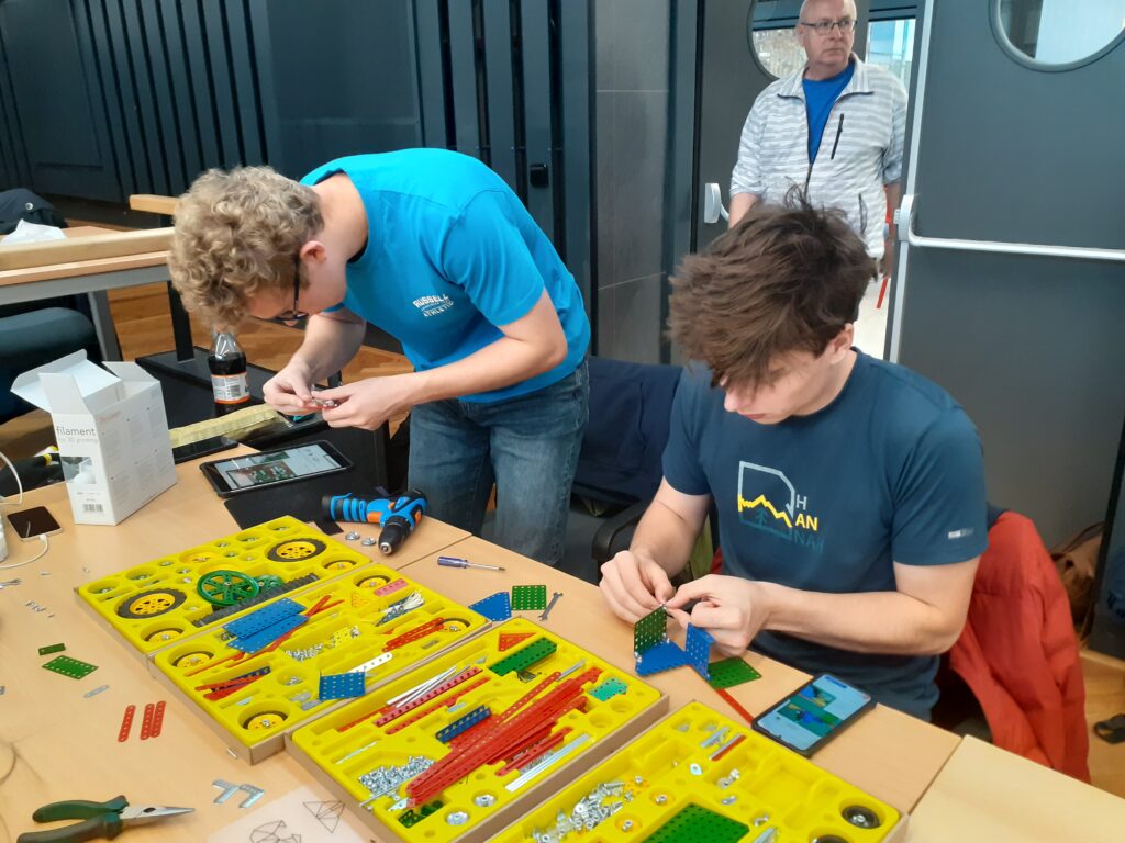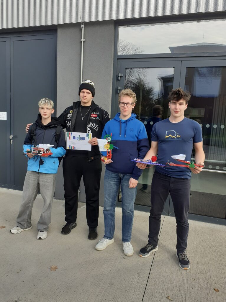 Dne 20. 10. 2025 se tým složený ze dvou studentů naší školy – Jan Nevečeřal a Matěj Zahrádka (oba 8.E) a dvou žáků partnerské Benešovy ZŠ a MŠ zúčastnil soutěže, kterou tradičně pořádá Plzeňský kraj. Úkolem bylo sestrojit pomocí stavebnic Merkur a Boffin funkční přepravník. Náš tým obsadil v kategorii gymnázií 2. místo.