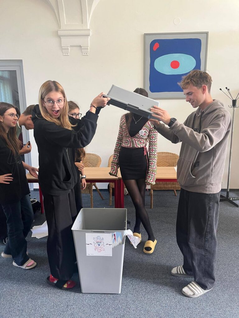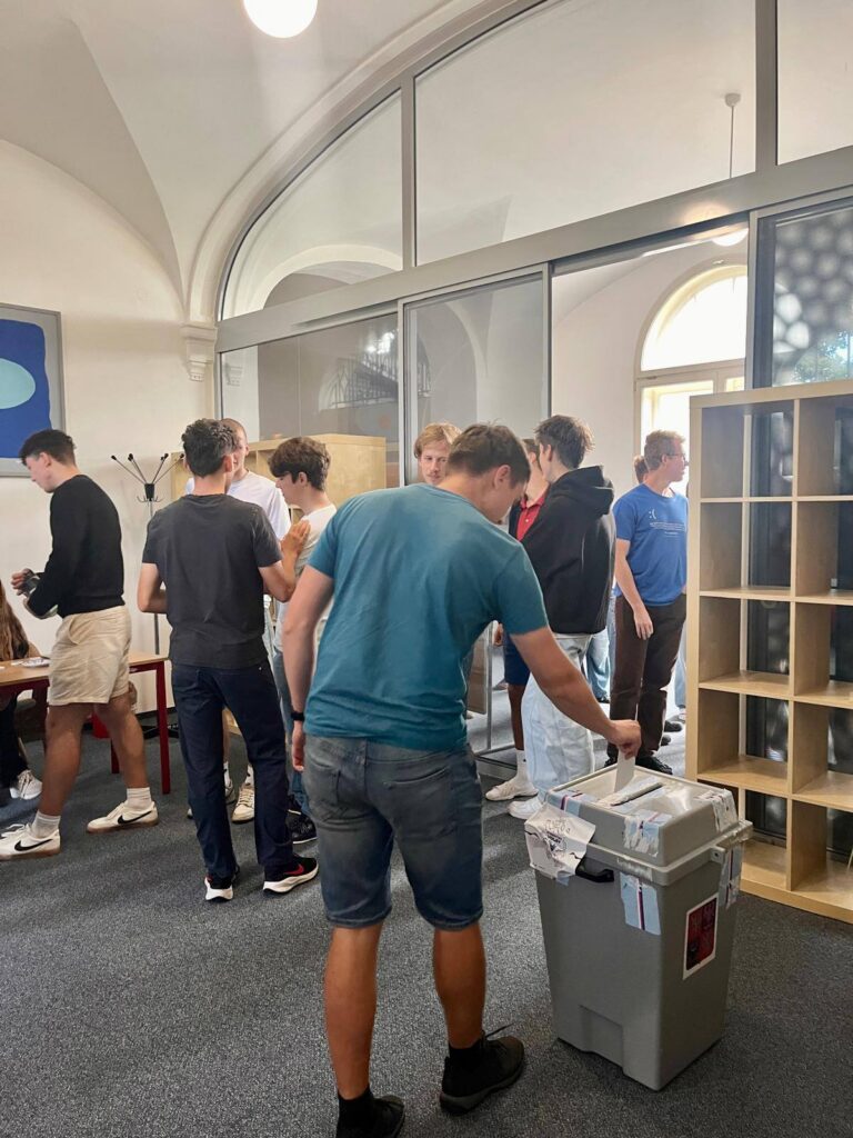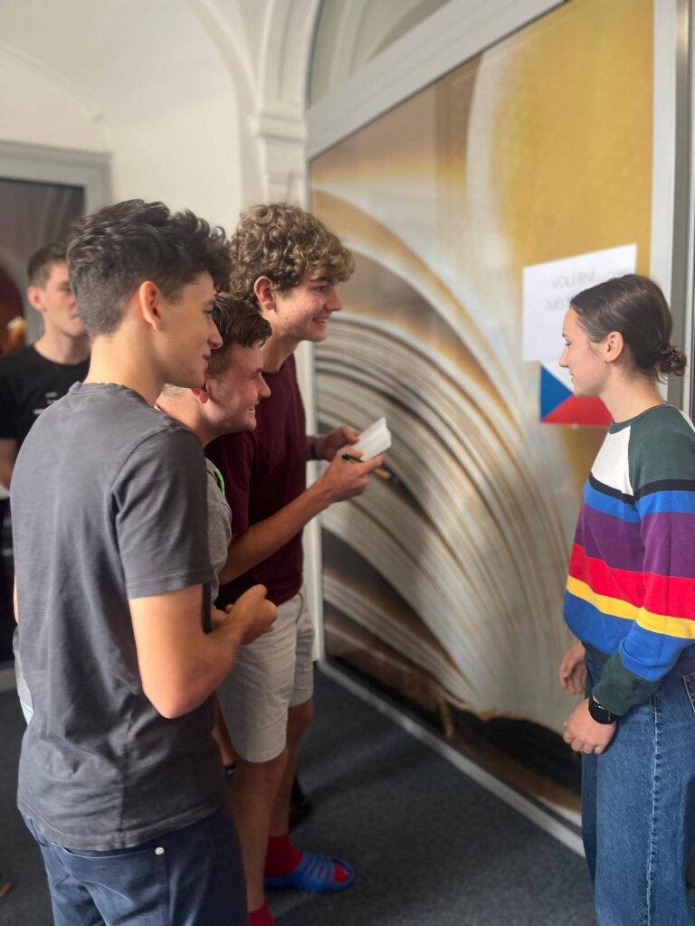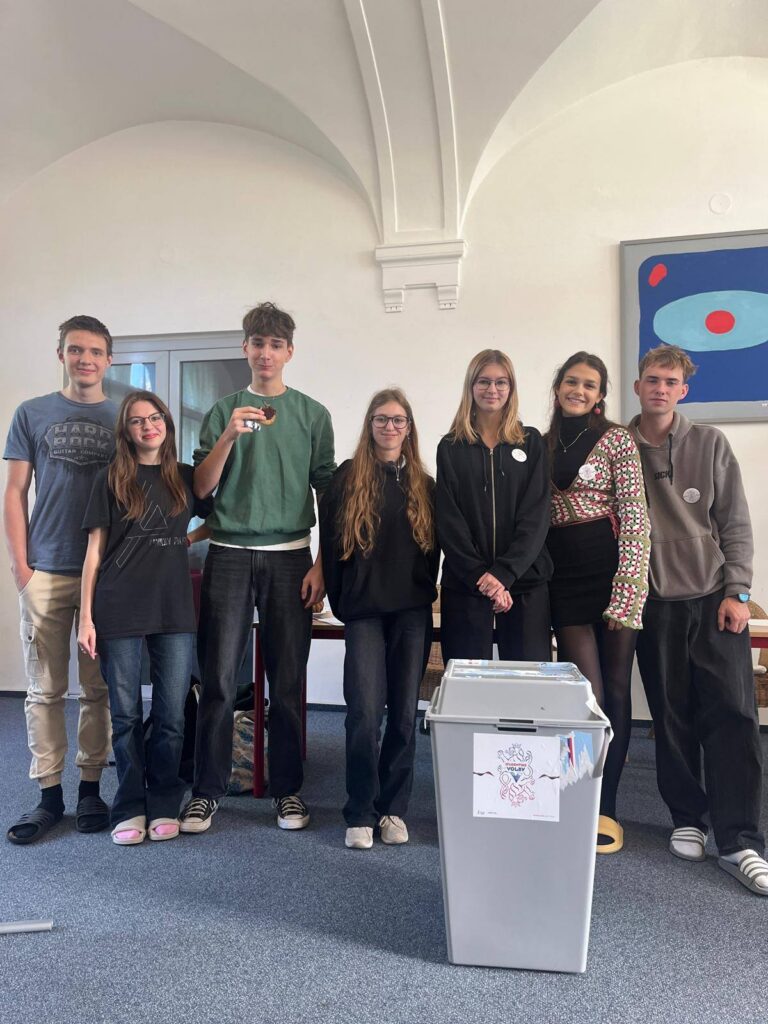 Dne 18. 9. 2025 se na naší škole konaly studentské volby. Předaulí se o přestávkách přeměnilo na volební místnost a do komise usedli studenti ze 3. A, kteří se s nadšením ujali organizace společně s paní učitelkou Kateřinou Cízlovou. Mohli volit všichni studenti starší patnácti let, to ovšem nebránilo mladším studentům, aby se přišli podívat, a studentské volby tím pádem podpořit. Nelenila ani skupinka studentů, která před volební místností zorganizovala improvizovaný exil poll. Tento úspěšný volební den zakončilo sčítání hlasů s konečným číslem 223 zúčastněných studentů. GyMik měl tím pádem jasné tři favority: Spolu, STAN a Piráty. Děkujeme všem zúčastněným a přejeme šťastnou ruku všem studentům, kteří už mohou volit „naostro“.