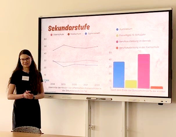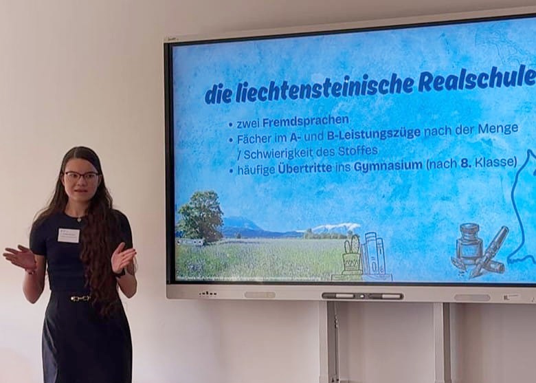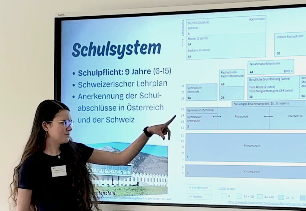 Veronika zaujala nejen plynulým projevem, ale i originálním tématem, jímž byl „Lichtenštejnský vzdělávací systém“ Zamýšlela se nad otázkou, proč jsou žáci z tak malé země nejlepší v Evropě podle testů PISA?“