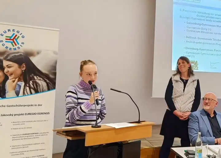 30. října 2025 se paní Jitka Pekárová, vedoucí komise 2. cizích jazyků, s ředitelem školy Janem Hosnedlem zúčastnili slavnostního zahájení již 30. školního roku 2025/26 v rámci bavorsko-českého výměnného žákovského projektu Euregia Egrensis v Marktredwitzu.