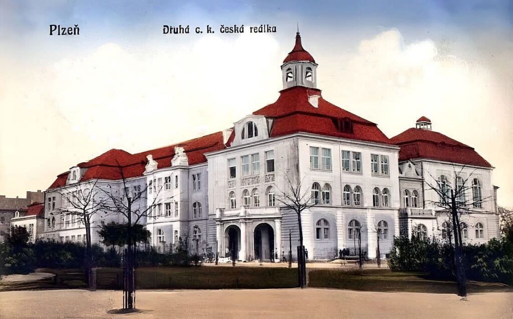 - 1906–1941: II. česká státní reálka v Plzni, Železniční ulice (1906–1914), Mikulášské náměstí 23 (1914–1918), Masarykovo náměstí (1918–1940)