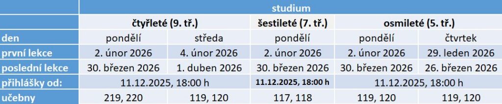 Pro uchazeče (9. třída, 7. třída, 5. třída) nabízíme termíny uvedené v tabulce.